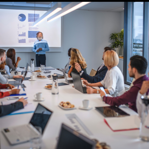 Presentarte a ti mismo, programar y dirigir una junta en inglés desde inicio hasta solicitar comentarios y contribuciones